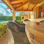 Finca Can Daniel - Pool - Aussenkueche - Garten villa offers self-catering amenities, such as an equipped kitchen, and a dining area for guests' convenience. The kitchen also offers a toaster, a stove top, and kitchenware. The Pollenca accommodation can be reached by car in 49 minutes from Palma de Mallorca airport.